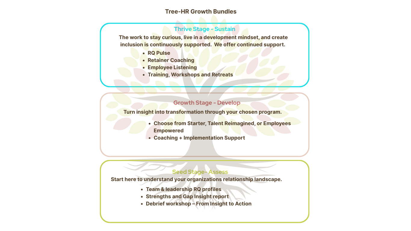 Each stage of the Tree-HR ecosystem is designed to build upon the last helping organizations move from insight to action to lasting transformation towards human connection.